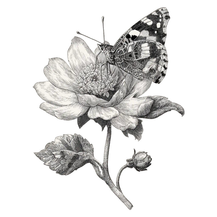 Botanical Butterfly Illustration Vinyl Car Decal Sticker – Waterproof & UV-Resistant 3.4133333333333336"
