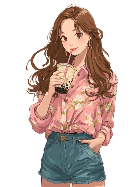 Korean Woman Drinking Tea Vinyl Car Decal Sticker – Waterproof & UV-Resistant 8"